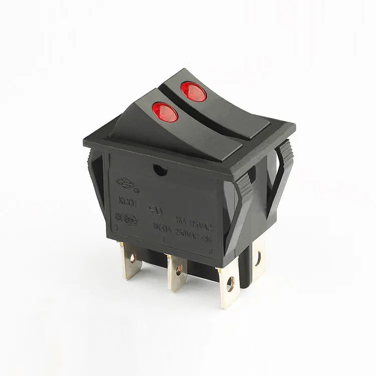 Our rocker switches boast a mechanical life of 50,000 cycles and an IP65 rating, making them resistant to dust and water. They are certified by CQC, CE, UL, CB, ENEC17, and ROHS, ensuring safety and compliance. Available in black with a selective button color, these switches come with 6 pins (also available in 2, 3, 4, or 6 pins) and lamp voltages of 6V, 12V, 24V, 110V, or 220V.